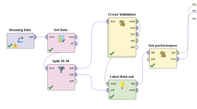 El flujo en Rapidminer se debería ver de la siguiente manera: